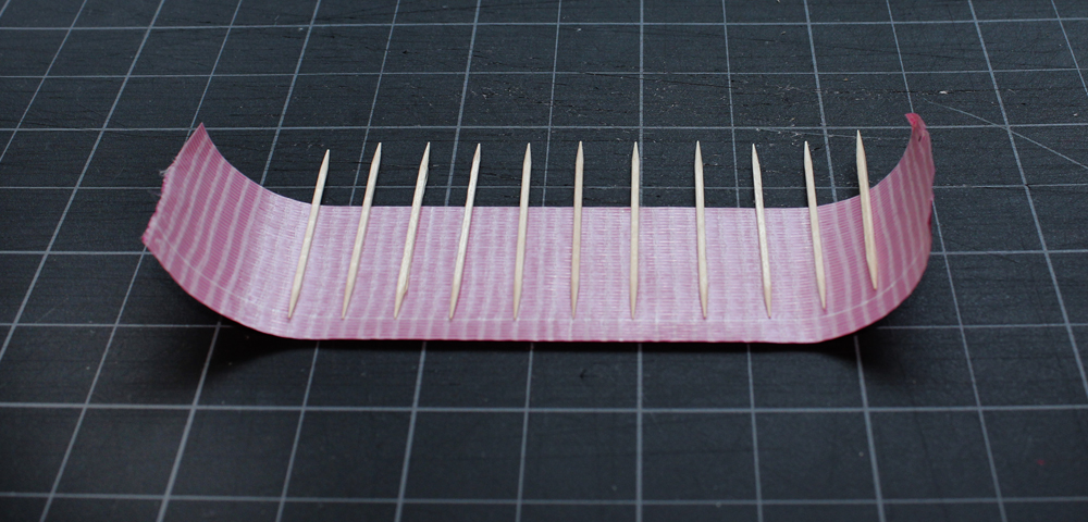 *Toothpicks, old combs, forks, and other tools for swirling the colors. Pictured above is the comb we made out of toothpicks and duct tape, like this: