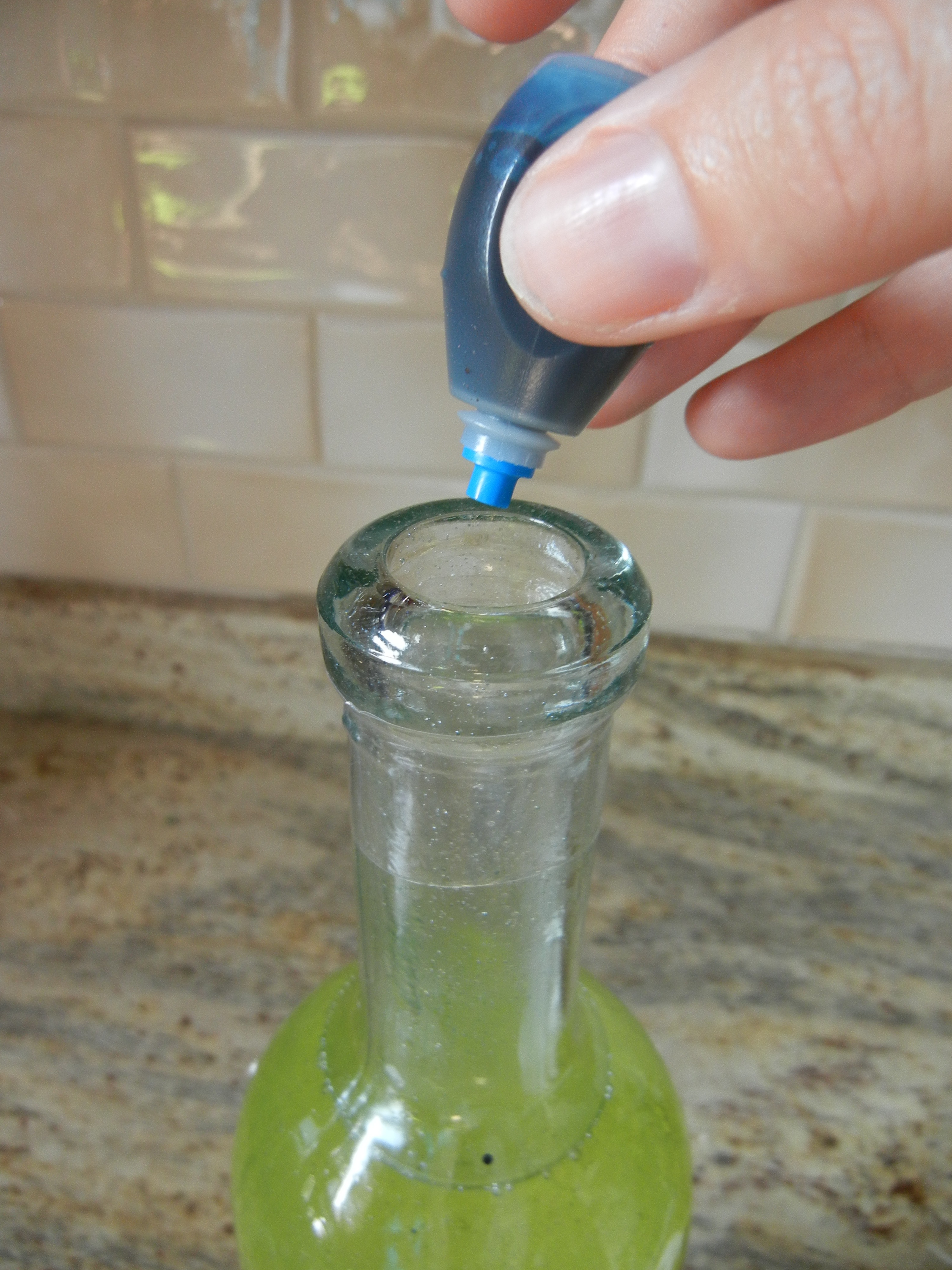 - An empty bottle – those schmancy designer water bottles work well (as do empty – erm – adult bottles, as pictured above), but any empty, clear bottle will work just fine