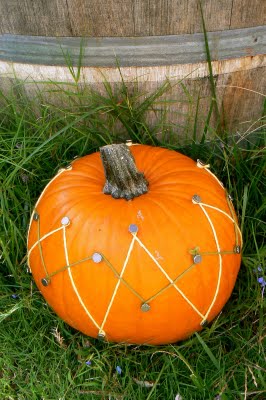 Jeanetics.net suggests pumpkin bowling. No need to scoop out the innards, just use an apple corer or large drill bit to cut three holes for the grip: