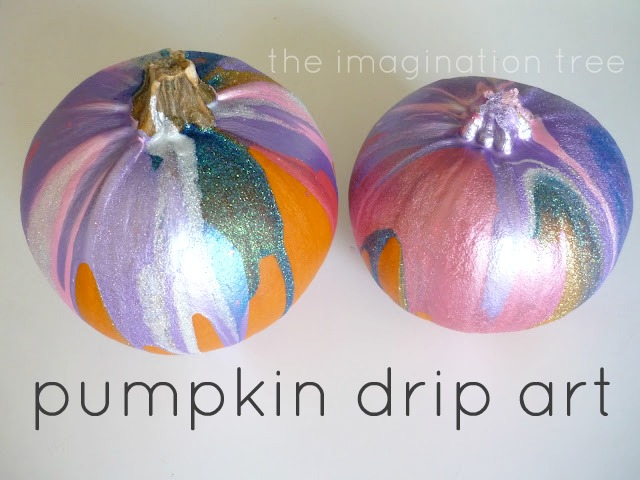 Imagination Tree makes drip paintings on pumpkins, using acrylic paint.