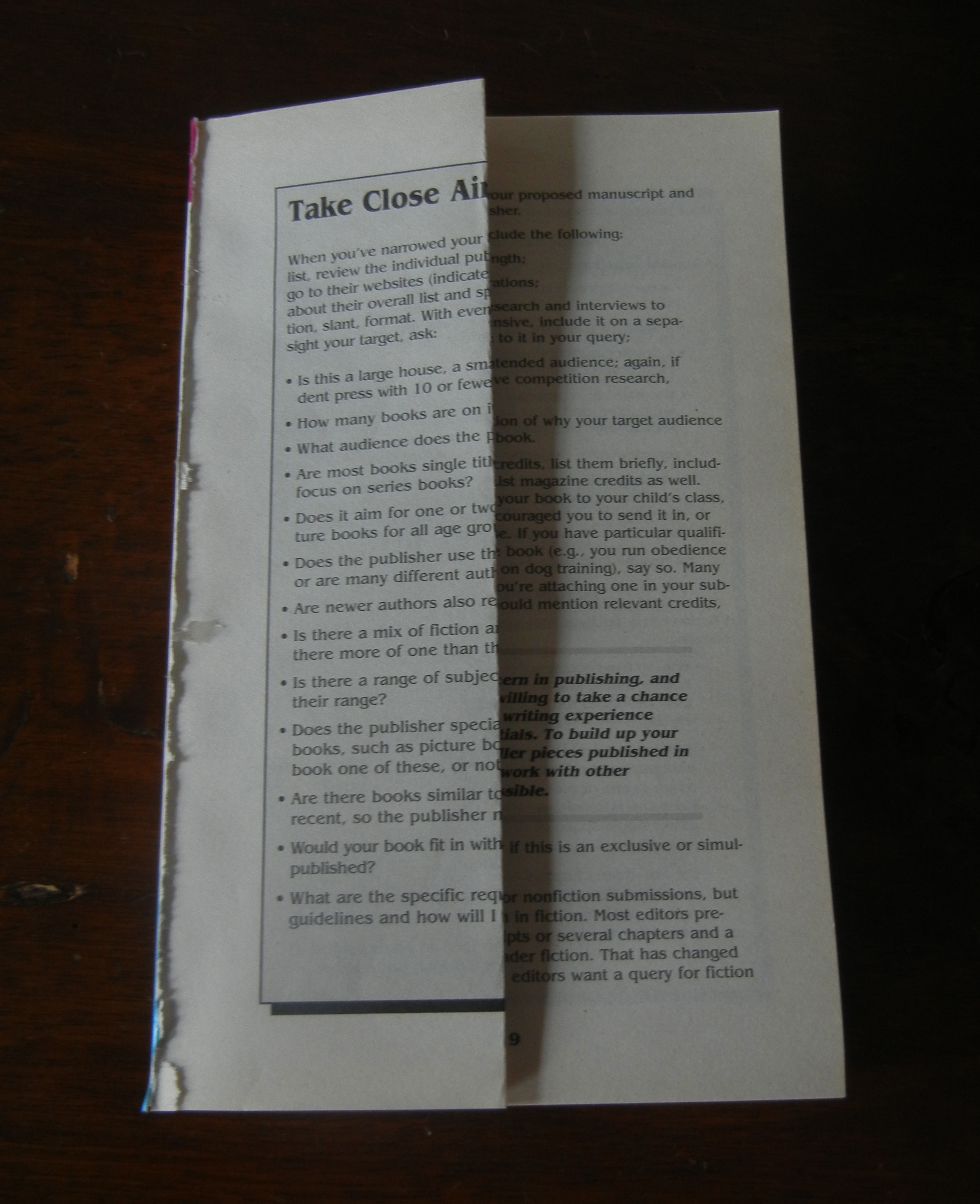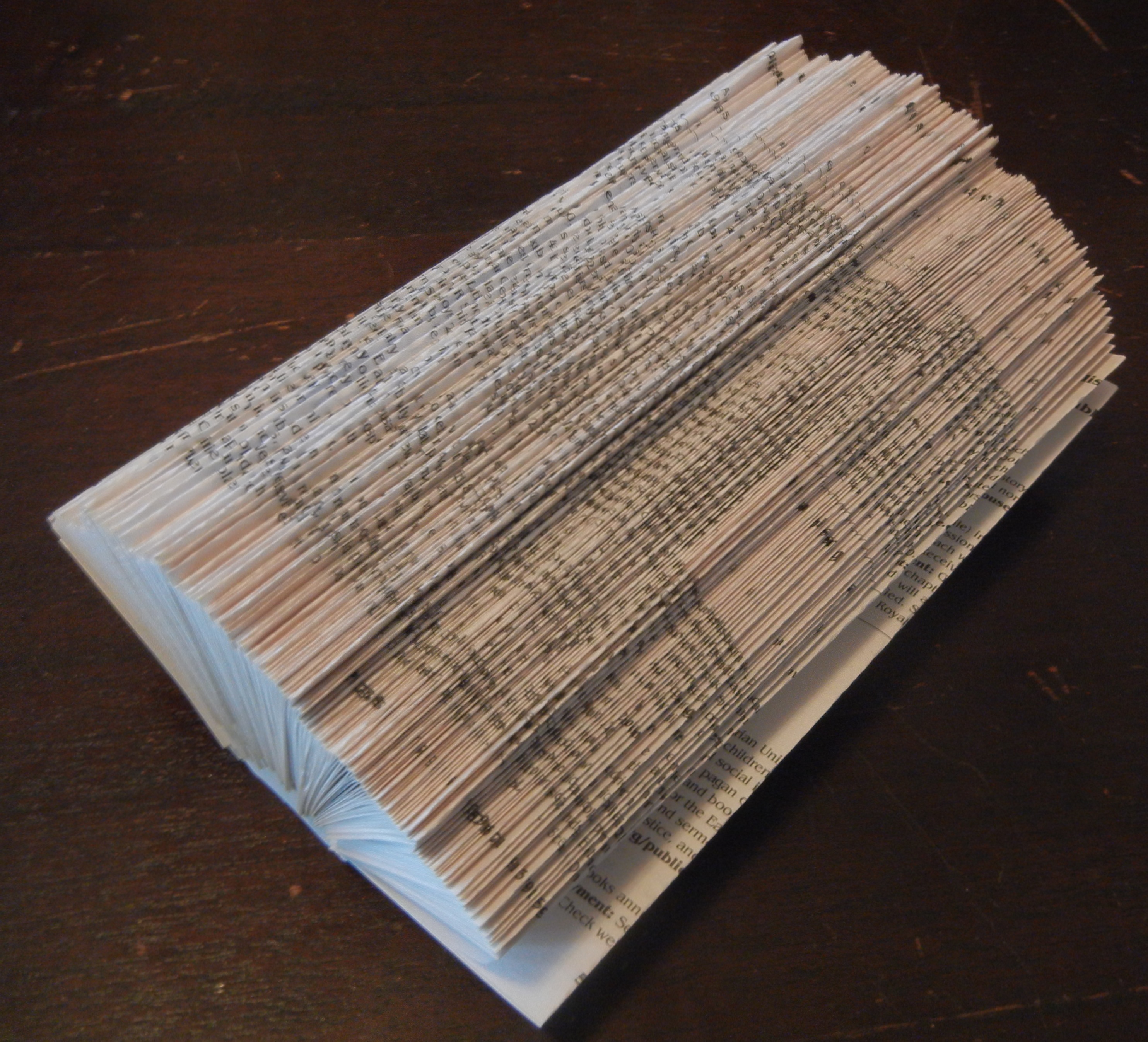 DSCN1163I am pretty sure I folded all the pages in the same direction, but it’s likely I lost track somewhere in the middle. Like I said, it’s a forgiving craft. According to the amazing book from which I lifted the idea, folding the pages in different and alternating directions can yield some interesting effects, so feel free to experiment.