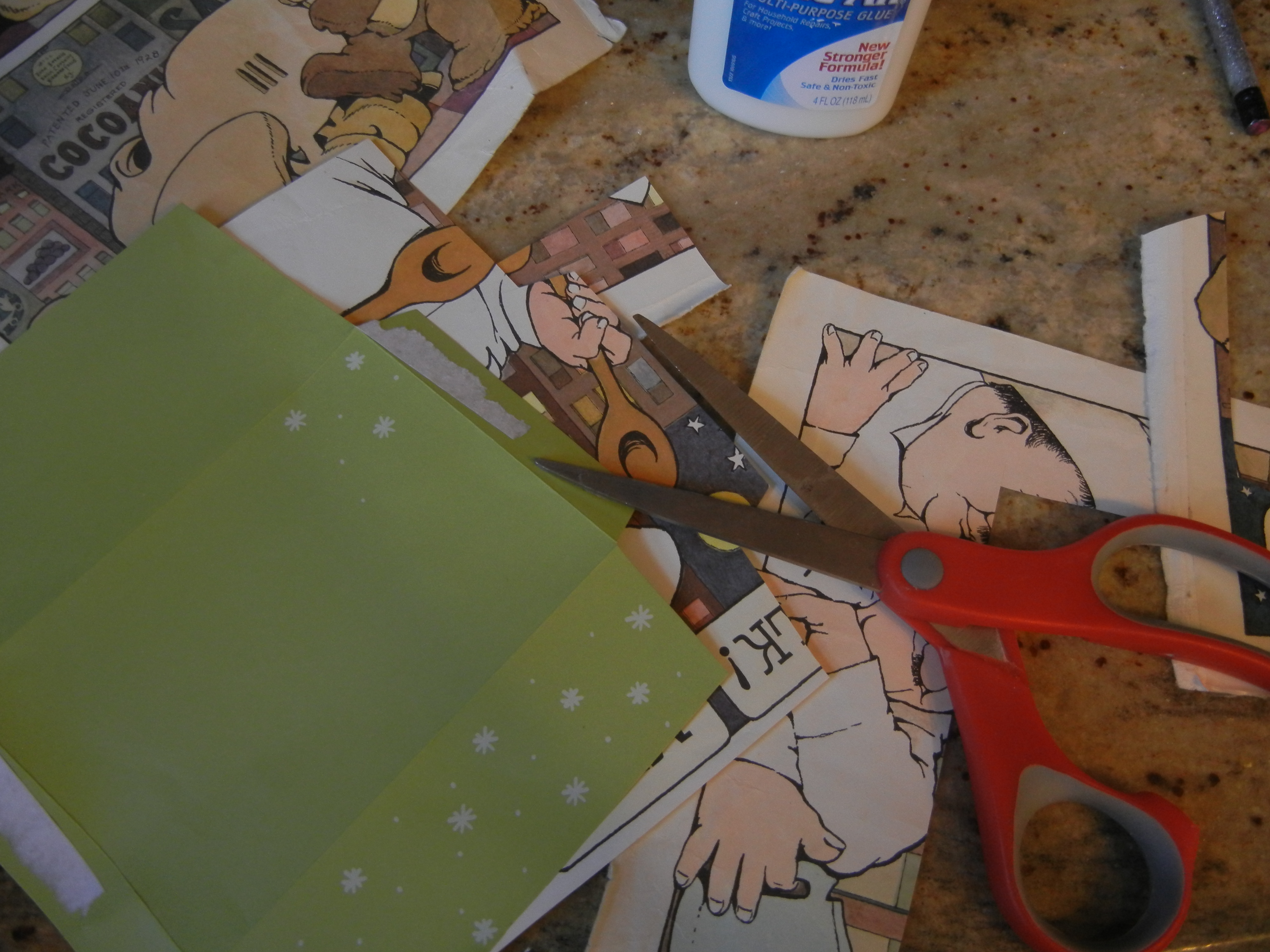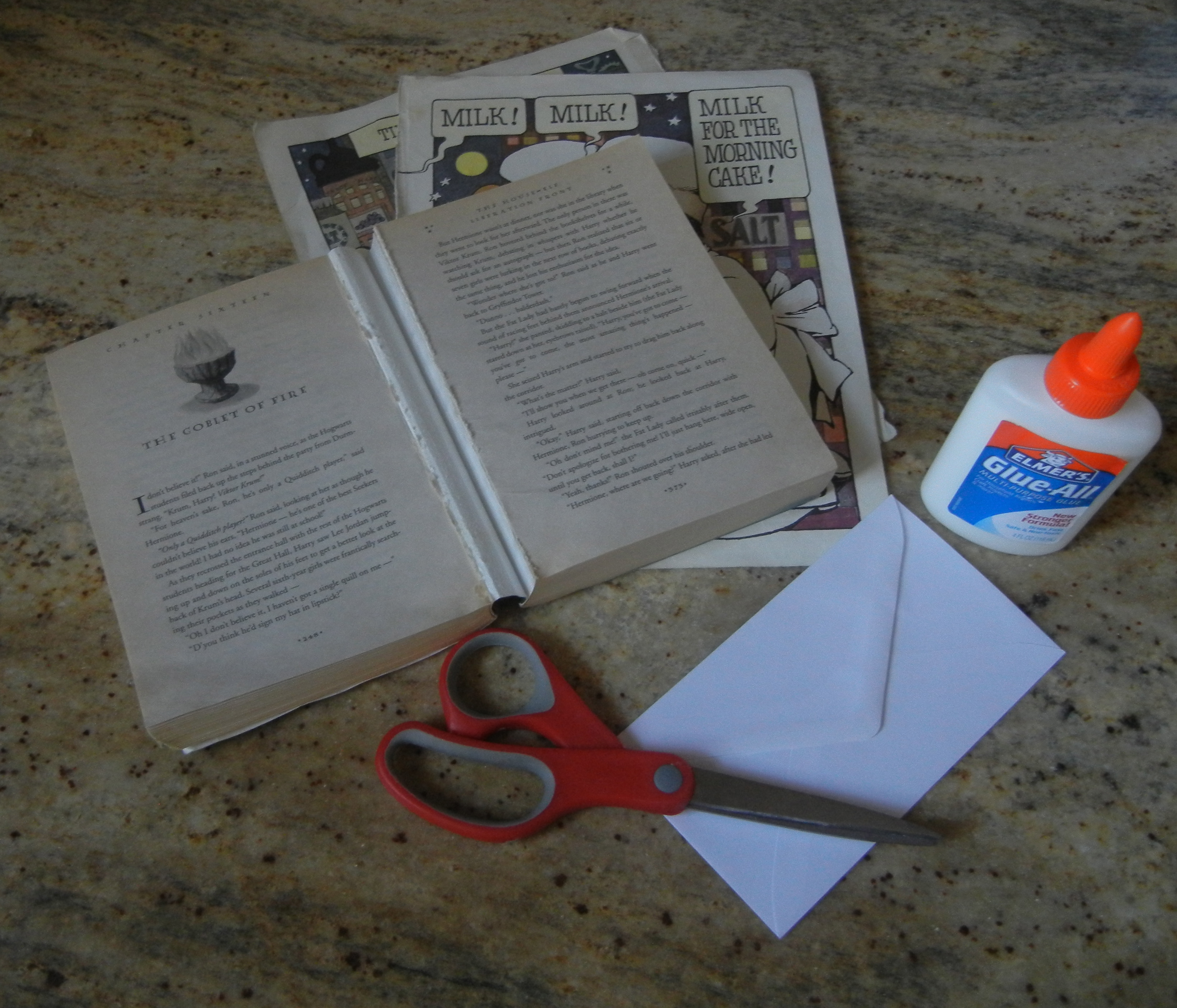 - An old book or book pages – picture books are particularly fun, ’cause they’re colorful and festive. Whimsy never hurts anyone.