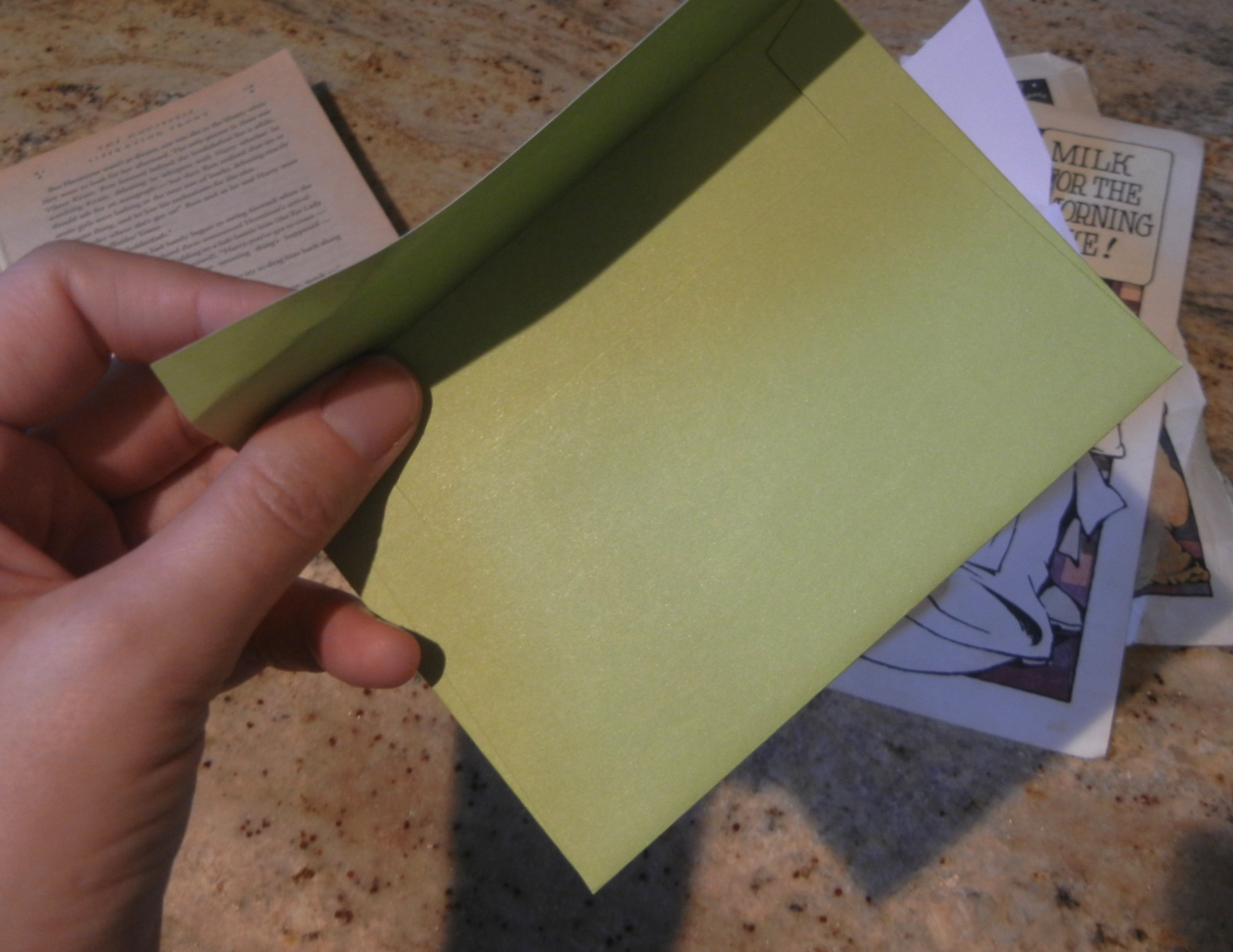 Reveling in my success, I thought to myself, “Hmmm. I wonder if the bigger envelope would still work, even if the page is a little smaller.” So I tried it.