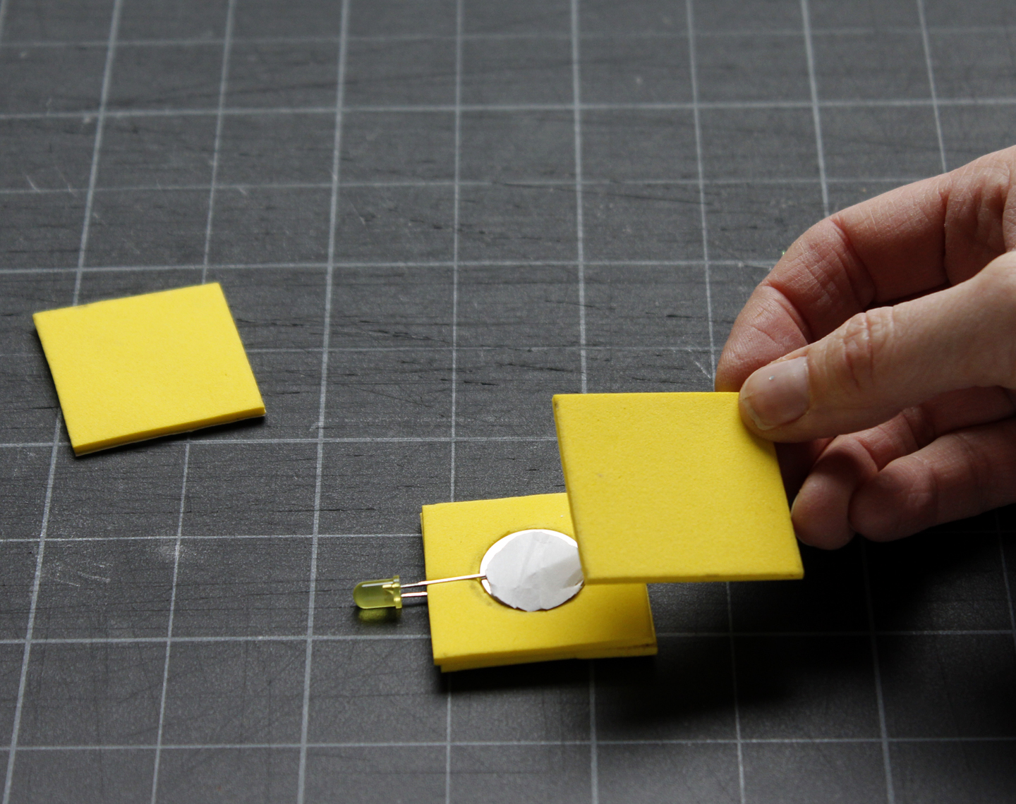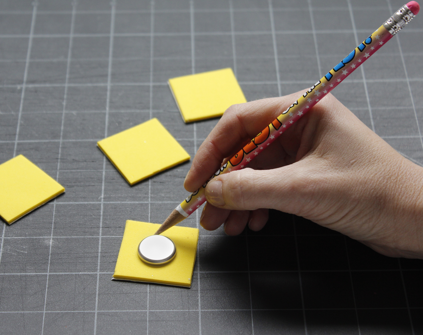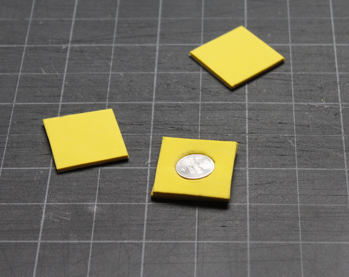1. Cut out four squares of foam, measuring 1 1/2 inches on each side.