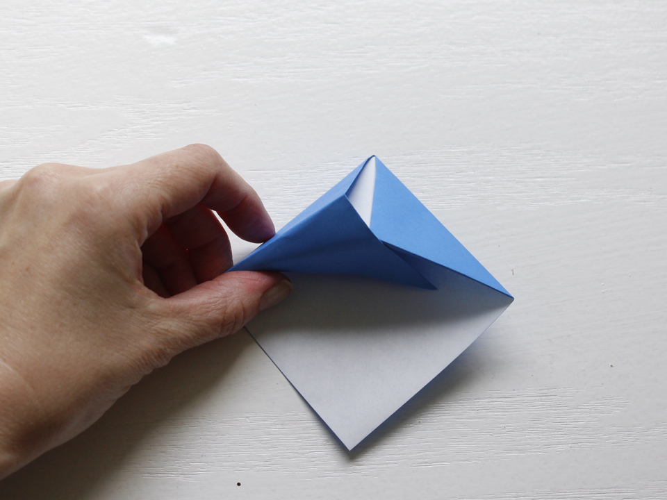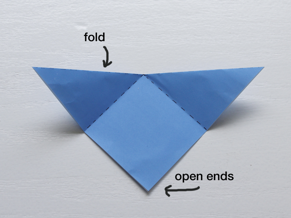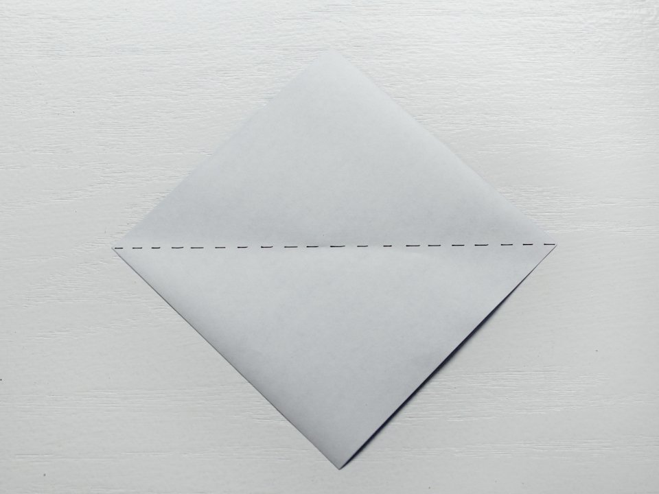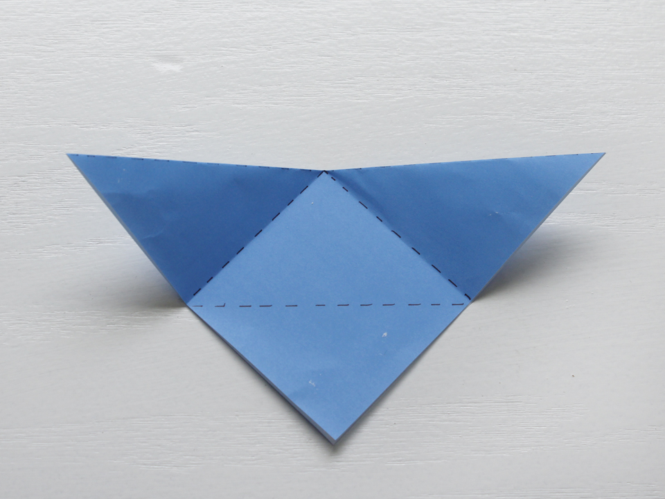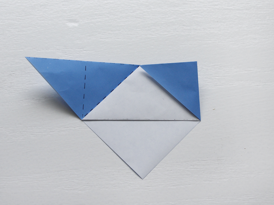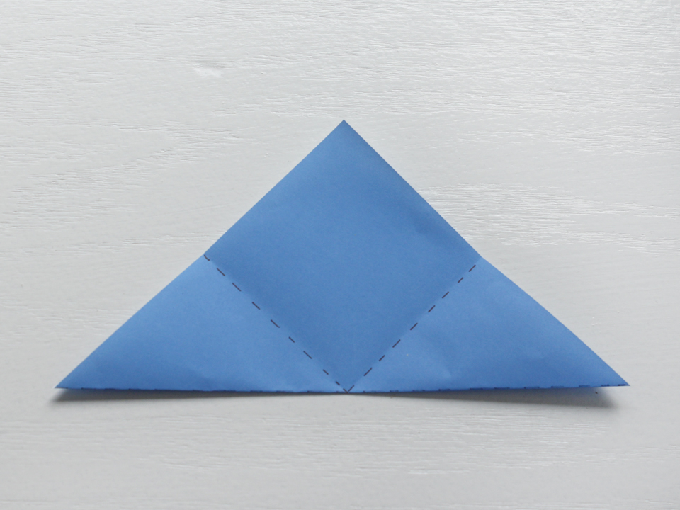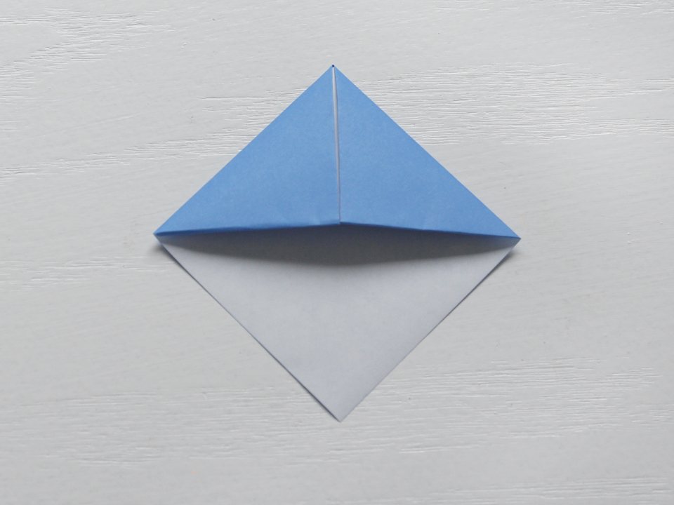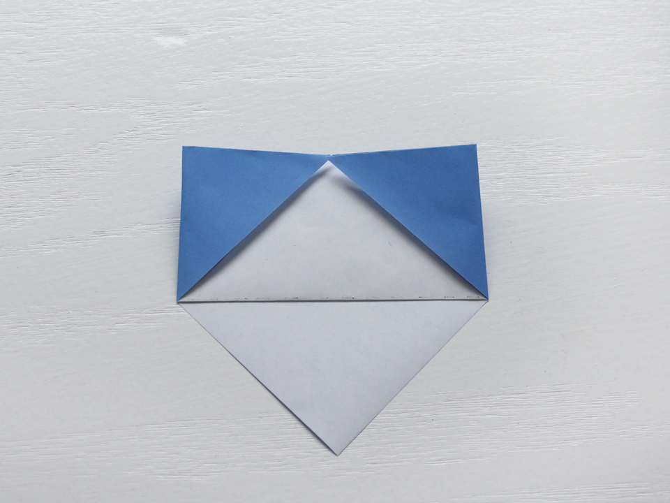 2. Making sure the fold is at the bottom, take the two side points up to meet at the top of the triangle. Crease neatly.