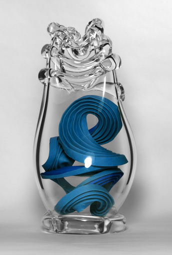Sometimes he puts his paper sculptures inside of his glass pieces. How, I do not know. I am reasonably sure that he knows and does quite a few things that I do not.