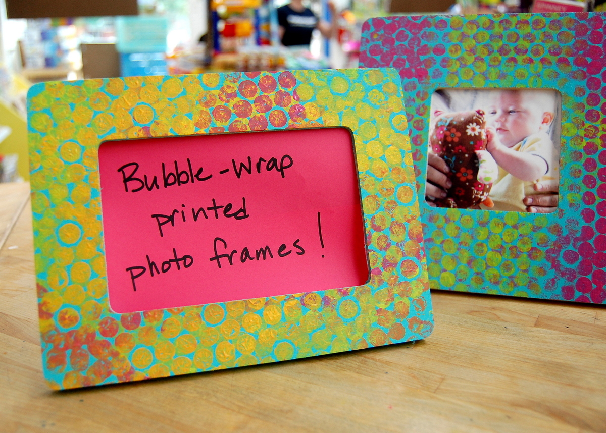 Instead of painting and pressing, try painting the bubble wrap and hanging the finished product in a window to create a bubble wrap version of stained glass.