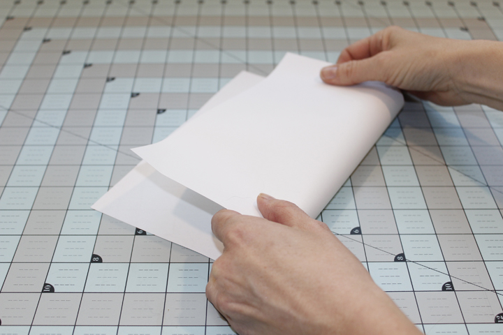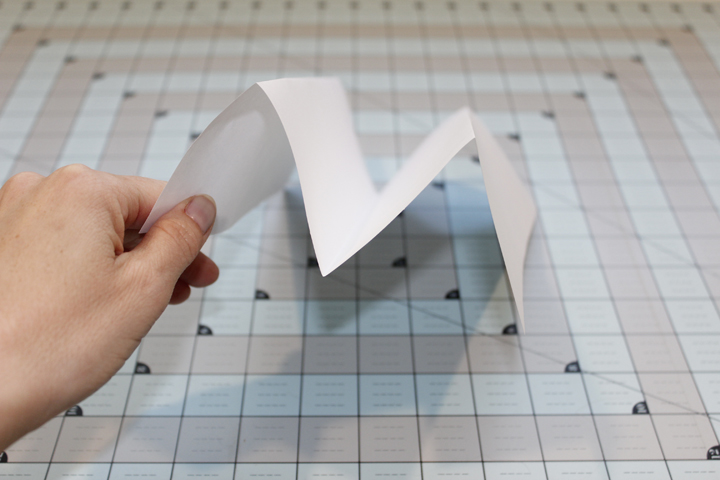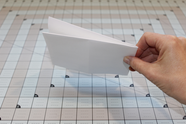 1. Fold paper in half once the hamburger way (i.e., to get a wider shape, rather than a long, skinny “hot dog” shape.