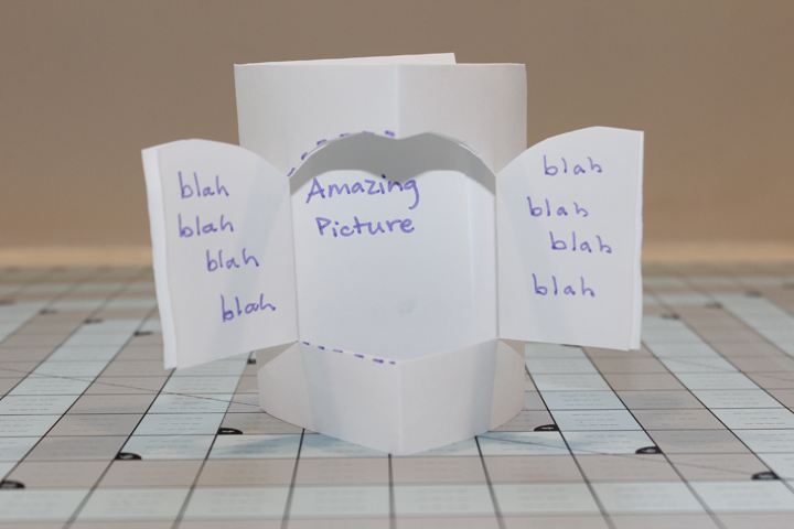 You could use this as a report format–especially good for reporting on a play or film. Illustrate the action, climax, or main theme on the stage.