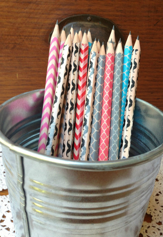Washi tape-covered pencils. Now that Target and Amazon and Walgreen’s are all peddling washi tape…might be time to try it!